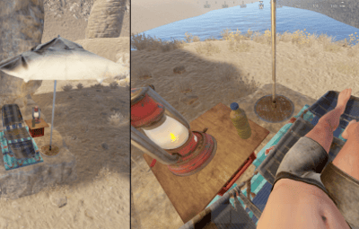 The Standalone Version is the centerpiece of the monument by itself accompanied by 4 Small Food Crate Spawns.
