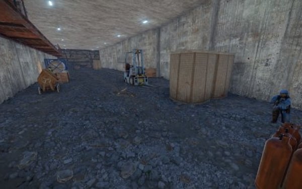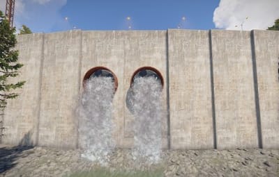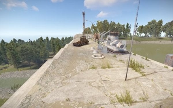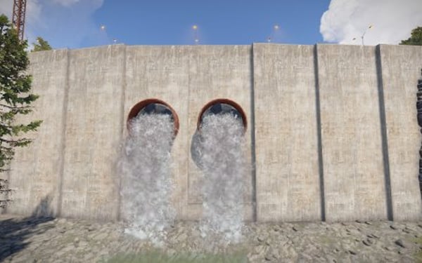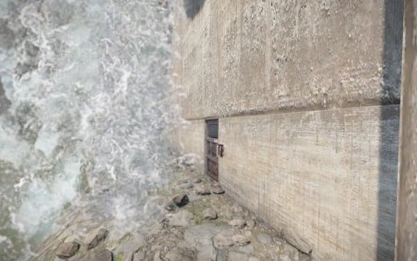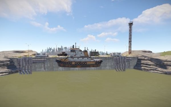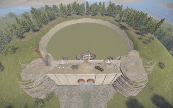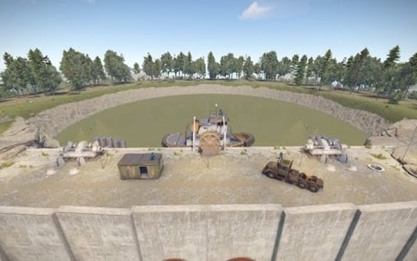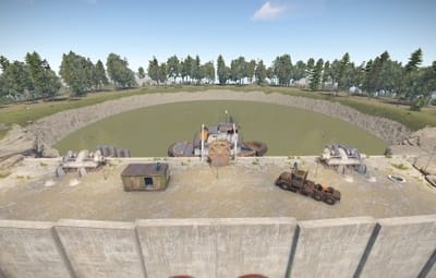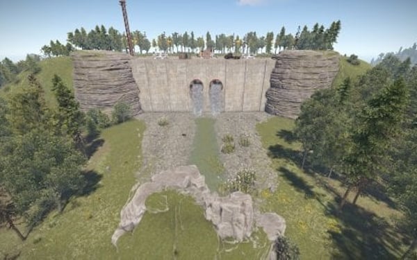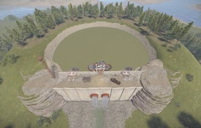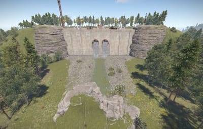 Monument with bots and loot. The damn has one tunnel entrace on top.