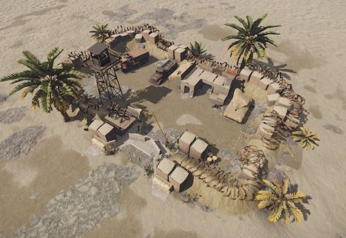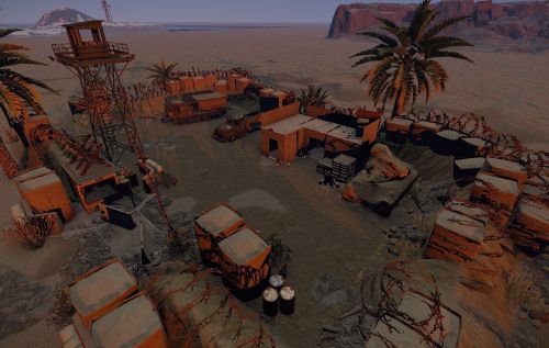 A miniature version of the Military Base, with a similar theme and the same functionality. This monument is perfect for small maps trying to get the same features as large ones. Contains working lights, switch located by the recycler.