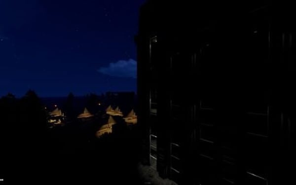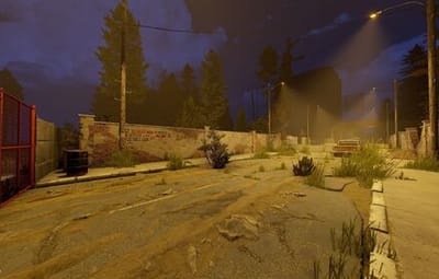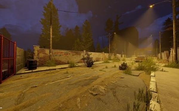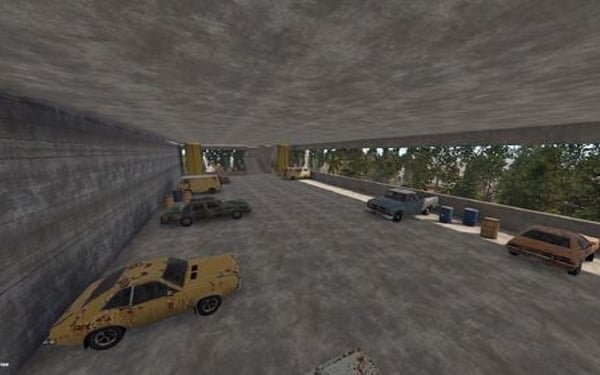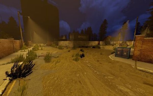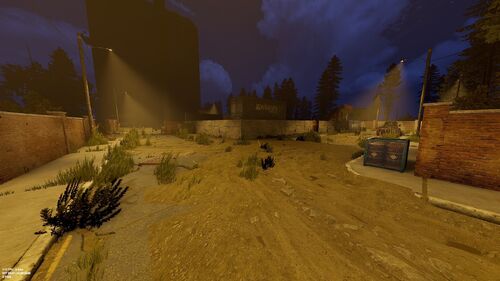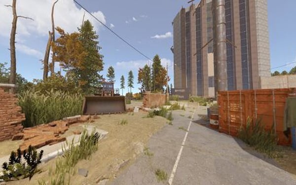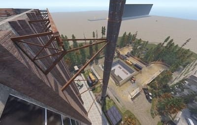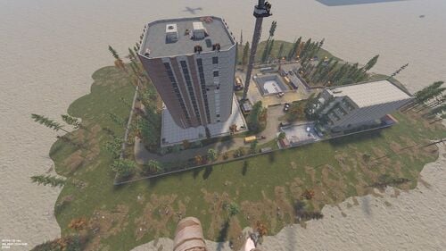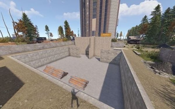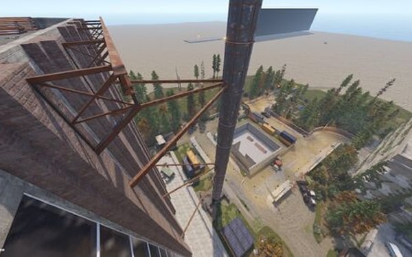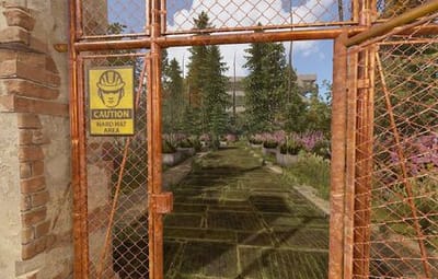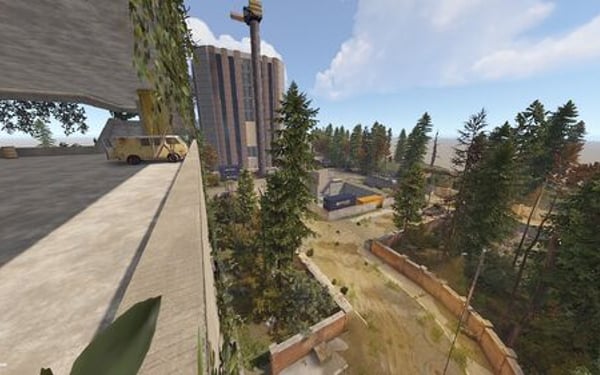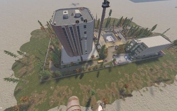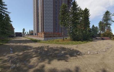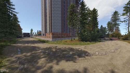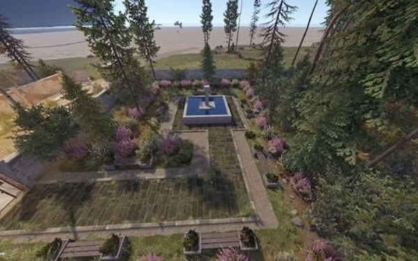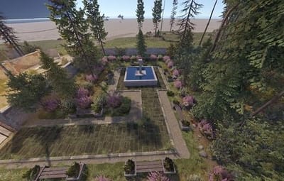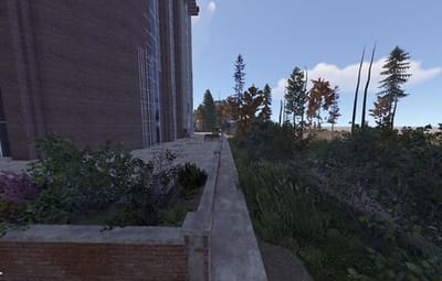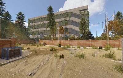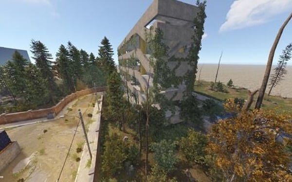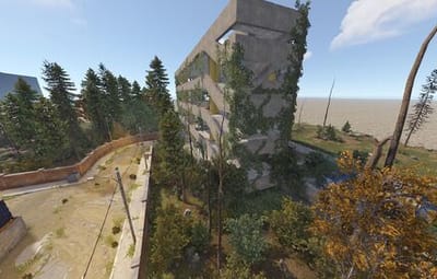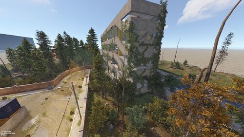 The main structure is surrounded by an enclosed area overgrown with dense trees and bushes, adding an air of mystery to the location.