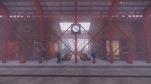 - It consists of two spaces for railway tracks, one for creating a respawn point for trains and one for running, it also contains NPCs, loot and a hackable box.