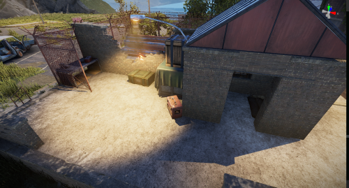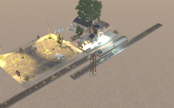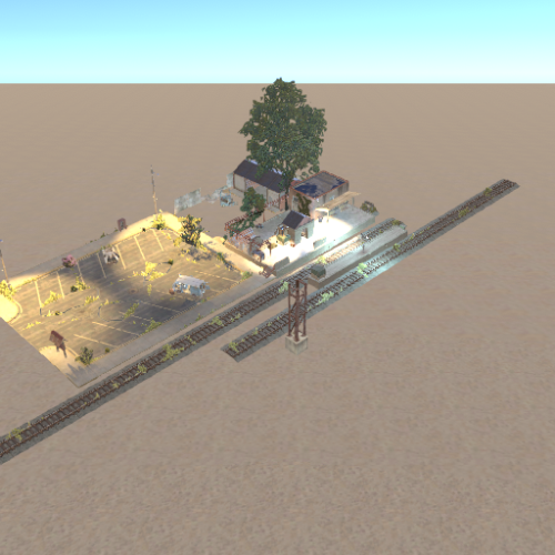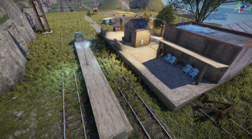 A Train Station with a Safe House what contains a sleeping Bag and a Chest, a Repair Bank on station and some Loot for the start.