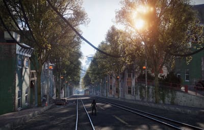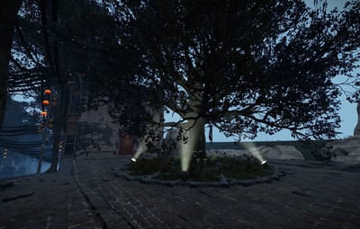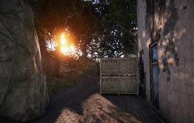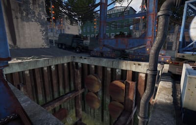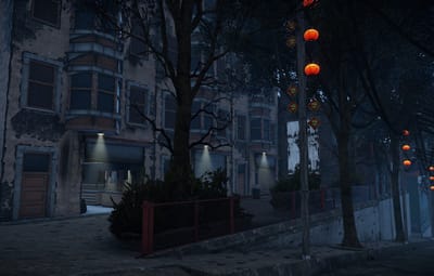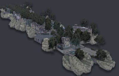 In the city, you’ll find shops, garages, a ruined store, roofs with parkour, loot, trams, narrow streets between houses, atmospheric decorations, houses with lootable parcels at the doors, and building spots.