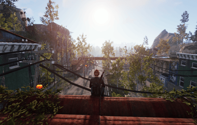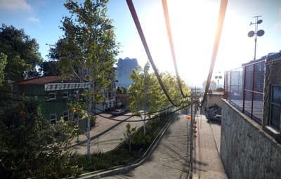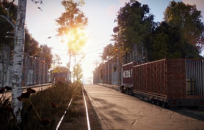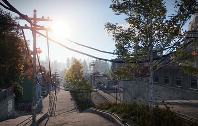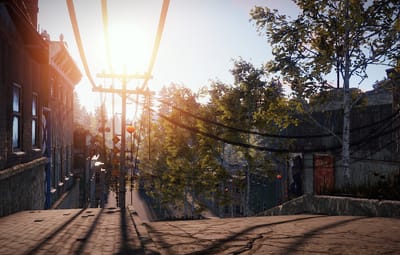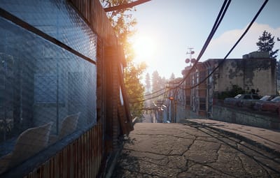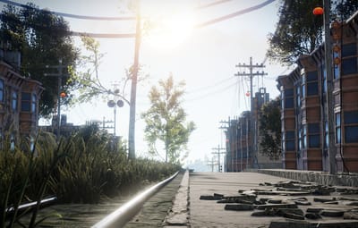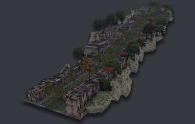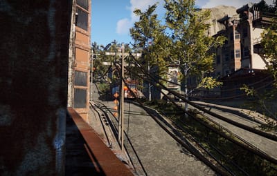 In the city, you’ll find shops, garages, a ruined store, roofs with parkour, loot, trams, narrow streets between houses, atmospheric decorations, houses with lootable parcels at the doors, and building spots.