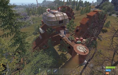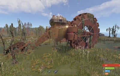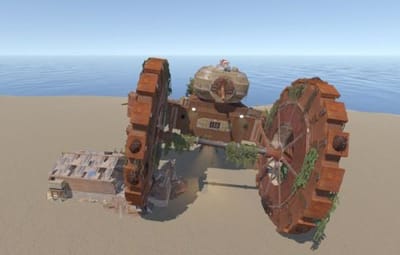 This rusted mechanical giant blends seamlessly into Rust's environment, offering a striking visual landmark and rewarding gameplay experience. Moreover it pairs perfectly with the Ruined Warehouse — like the tank rolled straight over this warehouse and kept going!