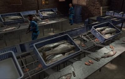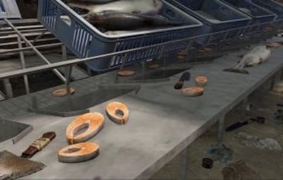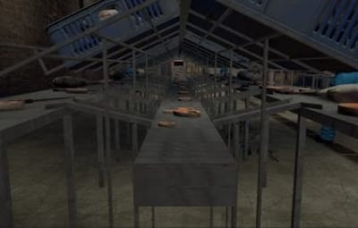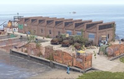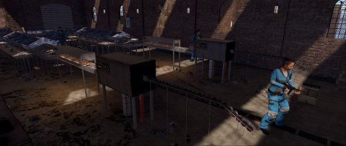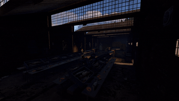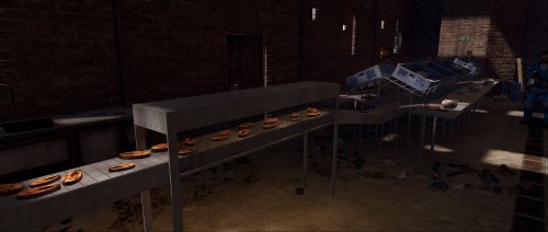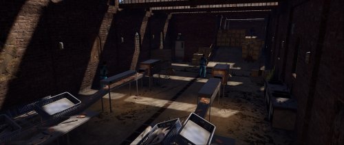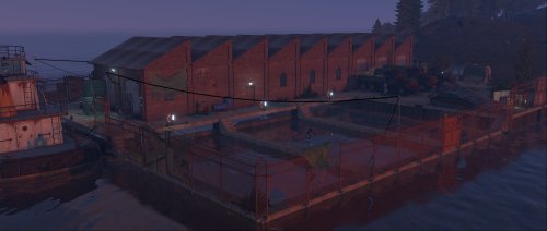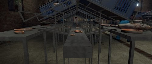 This factory monument is arranged over one large factory floor and a basement containing two production lines for canned tuna, from gutting the fish to cooking, all beautifully detailed with bricked-up windows, missing tiles, the red card puzzle, and plenty of looting opportunities with some custom loot boxes.