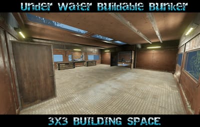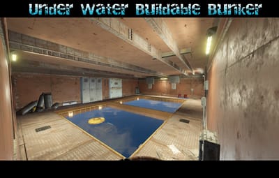 Dual entrances from water, 1 is a powered door (power is inside buildable zone) that allows players to use a RF transmitter to open the gated door. (This prevents players from stealing subs etc)