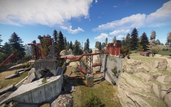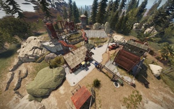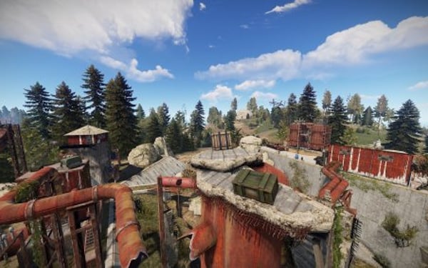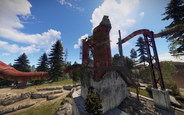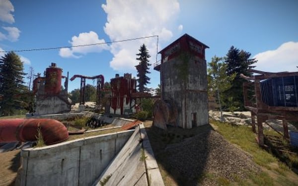 Right, it's the water station, transferring the much needed wetness across the island, fortified against floods by a dam, changed by the post-apocalyptic backstory of Rust and full of loot ripe for the taking by daring players, friendly or hostile!