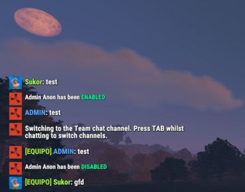 This plugin allows Rust admins to hide their identity in the chat. To change the username color for the "ADMIN" group, configure the "admin" group in BetterChat. Changes in BetterChat will automatically reflect in the plugin.