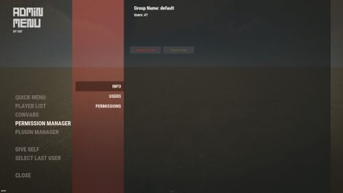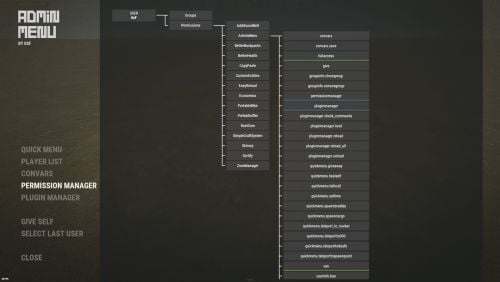 - adminmenu.permissionmanager - View and edit permissions in groups, player groups, create, delete and clone groups (requires additional permissions from these buttons).