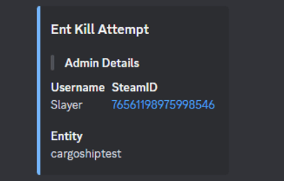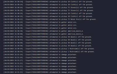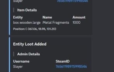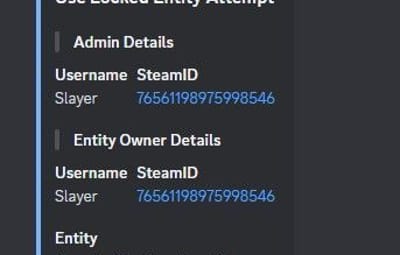 Quote{ "Commands Block": { "Enable commands blocking": false, "Commands list": [ "server.stop", "server.hostname", "server.description", "server.restart", "server.quit", "server.url", "kickall", "ownerid", "moderatorid" ], "Log without blocking": false, "Print to Console": false, "Log to File": false }, "Actions Block": { "Enable actions blocking": false, "Actions": { "Damage": { "Block Action": false, "Enable Discord Logging": false }, "Loot": { "Block Action": false, "Enable Discord Logging": false }, "Pickups": { "Block Action": false, "Enable Discord Logging": false }, "Building": { "Block Action": false, "Enable Discord Logging": false }, "Player Assist": { "Block Action": false, "Enable Discord Logging": false }, "Gathering/Farming": { "Block Action": false, "Enable Discord Logging": false }, "Locked Entity Usage": { "Block Action": false, "Enable Discord Logging": false }, "Cupboard Interaction": { "Block Action": false, "Enable Discord Logging": false }, "Codelock Interaction": { "Block Action": false, "Enable Discord Logging": false }, "Stash Interaction": { "Block Action": false, "Enable Discord Logging": false }, "Vehicles Interaction": { "Block Action": false, "Enable Discord Logging": false }, "Turret Interaction": { "Block Action": false, "Enable Discord Logging": false }, "Hack Locked Crate": { "Block Action": false, "Enable Discord Logging": false }, "Bed/Sleeping Bag Interaction": { "Block Action": false, "Enable Discord Logging": false }, "Oven Toggle": { "Block Action": false, "Enable Discord Logging": false }, "Recycler Toggle": { "Block Action": false, "Enable Discord Logging": false }, "Mixing Table Toggle": { "Block Action": false, "Enable Discord Logging": false }, "Diesel Engine Interaction": { "Block Action": false, "Enable Discord Logging": false }, "Excavator Interaction": { "Block Action": false, "Enable Discord Logging": false }, "Vending Machine Interaction": { "Block Action": false, "Enable Discord Logging": false }, "Entities Target": false, "Lift Usage": { "Block Action": false, "Enable Discord Logging": false }, "Buttons Interaction": { "Block Action": false, "Enable Discord Logging": false }, "Switches Interaction": { "Block Action": false, "Enable Discord Logging": false }, "Explosives Usage": { "Block Action": false, "Enable Discord Logging": false }, "Ent Kill": { "Block Action": false, "Enable Discord Logging": false }, "Ent Lock": { "Block Action": false, "Enable Discord Logging": false }, "Ent Unlock": { "Block Action": false, "Enable Discord Logging": false }, "Crafting": { "Block Action": false, "Enable Discord Logging": false } }, "Print to Console": false, "Log to File": false }, "Visibility Block": { "Enabled": false, "Entities list": { "cupboard.tool.deployed", "box.wooden.large", "woodbox_deployed" }, "Log to Console": true, "Log to File": false }, "Team Management": { "Enable team management": false, "Force admins to be in one team (overwrites all the below)": false, "Team Permissions": { "Can create team": false, "Can leave team": false, "Can invite to team": false, "Can be invited to team": false } }, "Anti Abuse": { "Enable anti-abuse": false, "Action on Detection (0 = None, 1 = Kick, 2 = Ban)": 0, "Teleport to building block zone": false, "Teleport to cargo": false, "Teleport Damage": false, "Print to Console": false, "Log to File": false }, "Actions Logger": { "Enable action logger": false, "Actions": { "Movements": false, "Door Interactions": { "Door Opened": false, "Door Closed": false, "Door Knocked": false }, "Box Looting": { "Loot Started": false, "Loot Ended": false, "Item Added": false, "Item Looted": false } }, "Ignore player-owned entities": false, "Print to Console": false, "Log to File": false }, "Discord Logging": { "Enable discord logging": false, "Webhook": "" } }