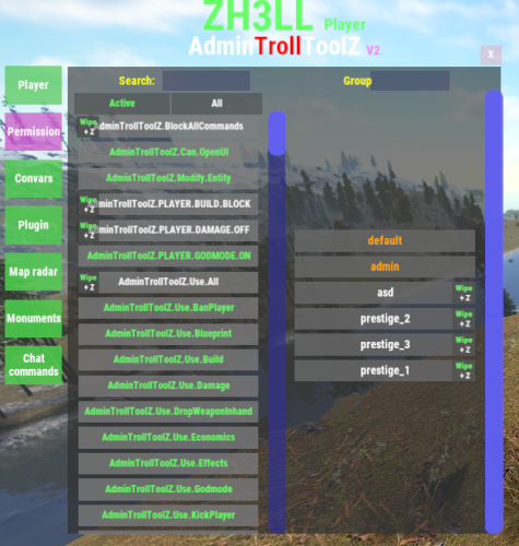 - AdminTrollToolZ.PLAYER.GODMODE.ON //only use this permission with AdminTrollTool UI ("Invulnerable on")