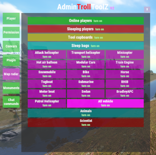AdminTrollToolZ is the definitive, feature-rich Oxide plugin designed to give server administrators unprecedented control and flexibility over their Rust environment. Stop juggling multiple commands and plugins—get everything you need in one powerful, easy-to-use User Interface (UI).
