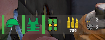 Advanced Player Hud will show players the health information of their armor, the ammount of bullets left on their inventory (for the weapon they are using in that moment). And the information on how many kills and deaths the user has.