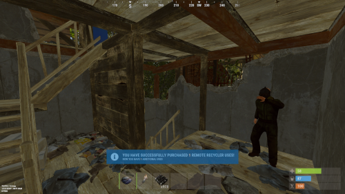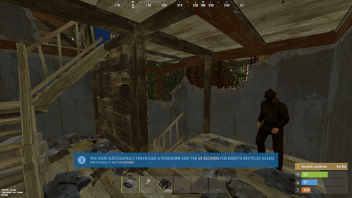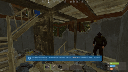 - /rec buy cd *amount*(optional) - Purchase a 60 second(* by amount) cooldown skip for remote recycler.