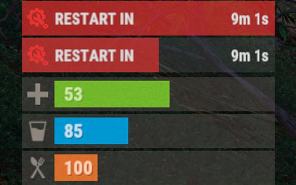 Dictionary<string, object> parameters = new Dictionary<string, object> { { "Id", "AdvancedStatusDemo_1" }, //<string>Unique identifier for the bar in your plugin. ***This is a required field. { "BarType", "Default" }, //<string>Type of the bar. There are 4 types: Default, Timed, TimeCounter and TimeProgress. { "Plugin", "AdvancedStatusDemo" }, //<string>Name of your plugin. ***This is a required field. { "Category", "Default" }, //<string>Internal plugin category of the bar. { "Order", 10 }, //<int>The position of your bar relative to others. Order is determined by increasing values(ASC). { "Height", 26 }, //<int>The height of your bar. A standard bar is 26 pixels. { "Main_Color", "#505F75" }, //<string>HTML Hex color of the bar background. { "Main_Transparency", 0.7f }, //<float>Transparency of the bar background. { "Main_Material", "assets/content/ui/uibackgroundblur.mat" }, //<string>Material of the bar background(empty to disable). { "Image", "scrap" }, //<string>Name of the image saved in the ImageLibrary or a direct link to the image if ImageLibrary is not used. { "Image_Local", "AdvancedStatusDemo_Scrap" }, //<string>The name of the image file(without its extension) located in *SERVER*\data\AdvancedStatus\Images. Leave empty to use Image. { "Image_Sprite", "" }, //<string>Sprite image of the bar. Leave empty to use Image_Local or Image. { "Is_RawImage", true }, //<bool>Which type of image will be used? True - CuiRawImageComponent. False - CuiImageComponent. { "Image_Color", "#6B7E95" }, //<string>HTML Hex color of the bar image. { "Image_Transparency", 1.0f }, //<float>Transparency of the image. { "Text", "Scrap" }, //<string>Main text. { "Text_Size", 12 }, //<int>Size of the main text. { "Text_Color", "#FFFFFF" }, //<string>HTML Hex color of the main text. { "Text_Font", "RobotoCondensed-Bold.ttf" }, //<string>Font of the main text. { "Text_Offset_Horizontal", 0 }, //<int>Horizontal offset for the main text. { "SubText", "35" }, //<string>Sub text. { "SubText_Size", 12 }, //<int>Size of the sub text. { "SubText_Color", "#FFFFFF" }, //<string>HTML Hex color of the sub text. { "SubText_Font", "RobotoCondensed-Bold.ttf" }, //<string>Font of the sub text. { "TimeStampStart", Network.TimeEx.currentTimestamp }, //<double>Responsible for specifying the start point of the time reference and 0% for TimeProgress and TimeProgressCounter bars. Used if the bar type is Timed, TimeCounter, TimeProgress or TimeProgressCounter. { "TimeStamp", Network.TimeEx.currentTimestamp + 6 }, //<double>Specifies the end time point after which the bar will be destroyed and 100% for TimeProgress and TimeProgressCounter bars. Used if the bar type is Timed, TimeCounter, TimeProgress or TimeProgressCounter. { "TimeStampDestroy", Network.TimeEx.currentTimestamp + 3 }, //<double>If TimeStampDestroy is specified and it is less than TimeStamp, the bar will be destroyed by TimeStampDestroy. Used if the bar type is Timed, TimeCounter, TimeProgress or TimeProgressCounter. { "Progress", (float)35 / 100f }, //<float>Progress. From 0.0 to 1.0. { "Progress_Reverse", false }, //<bool>Progress reverse. A value of false means that the progress will increase. Used if the bar type is TimeProgress or TimeProgressCounter. { "Progress_Color", "#89B840" }, //<string>Progress color. { "Progress_Transparency", 1f }, //<float>Progress transparency. { "Progress_OffsetMin", "25 2.5" }, //<string>Progress OffsetMin: "*left* *bottom*". { "Progress_OffsetMax", "-3.5 -3.5" }, //<string>Progress OffsetMax: "*right* *top*". { "Command", "kit" } //<string>If the field is not empty, the bar becomes clickable, and the specified command is executed upon clicking. Note: the command must be covalence. }; AdvancedStatus?.Call("CreateBar", player.userID.Get(), parameters); //Calling the CreateBar method with the passing of BasePlayer/playerID and a dictionary containing the required parameters.