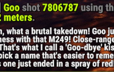 - Single kills with weapon and distance info
