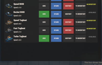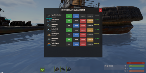 - Smart water spawning: adjusts spawn distance for large boats (RHIB/Tug).