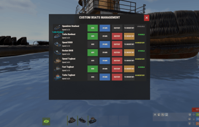- Cooldown system: global and per-boat cooldowns displayed in UI.