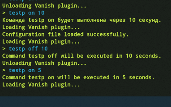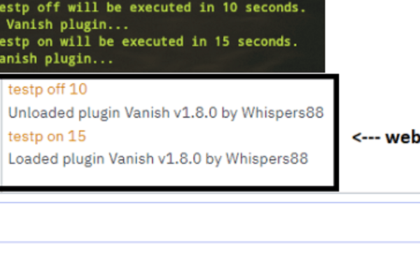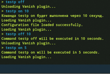 testp [on/off] [delay]: Load or unload plugins for test users.