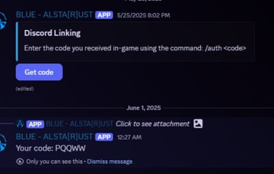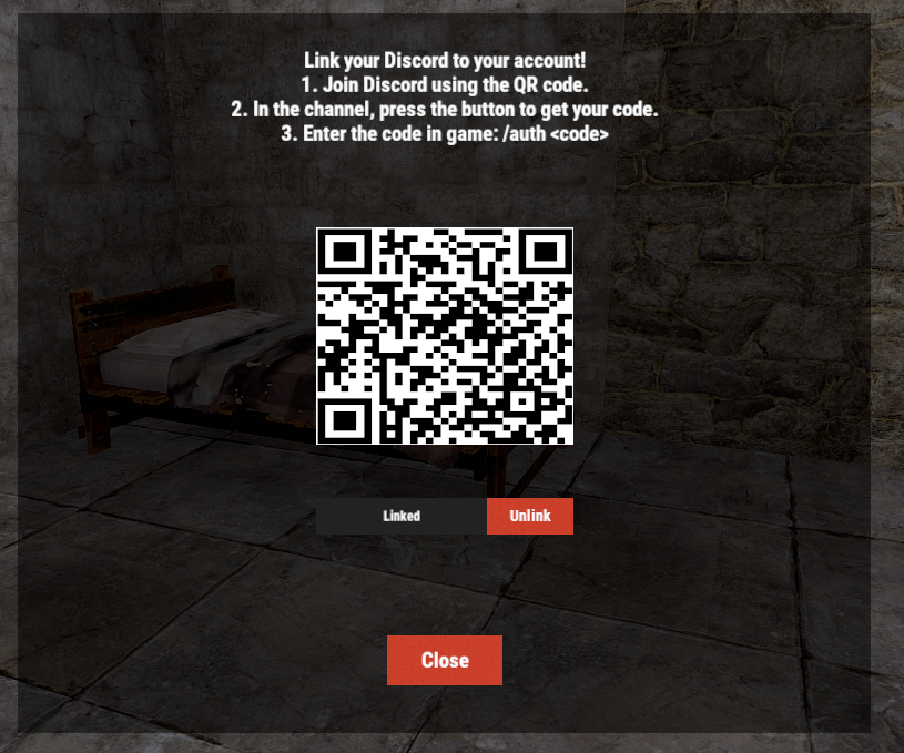 /auth – Enter the code you received from the discord in the game
