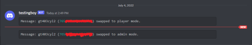 { "Chat Prefix": "<color=#32CD32>Auth Toggle</color>: ", "Discord Prefix": "Auth Toggle: ", "Discord WebHook": "https://support.discord.com/hc/en-us/articles/228383668-Intro-to-Webhooks", "Change Commands": { "Admin swap Groups": "tadmin", "Moderator swap Groups": "tmod", "Staff swap Groups": "tstaff" }, "Groups": { "Admin player group name": "default", "Admin group name": "admin", "Moderator player group name": "default", "Moderator group name": "mods", "Staff group name": "staff", "Default group name": "default" }, "Main Options": { "Change name as Admin": true, "Admin player name to use": "yourchosennamehere", "Empty Admin inventory on disconnect": false, "Store and restore inventory when swapping Auth levels (Admin Only)": true, "Auto run Admin commands": true, "Auto run Moderator commands": true, "Auto run player commands": true }, "Optional Dependencies": { "Vanish": true, "AdminRadar": false, "Godmode": false }, "Auto Commands": { "Admin chat commands to run when toggled to Admin": [ "" ], "Moderator chat commands to run when toggled to Moderator": [ "", "" ], "Admin / Moderator chat commands to turn off when toggled to Player": [ "", "" ] } }