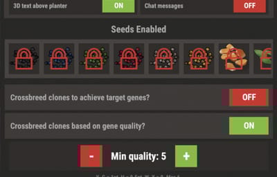 • Set max AutoBreeder amount per player, enable/disable pickup, and toggle ideal plants conditions.