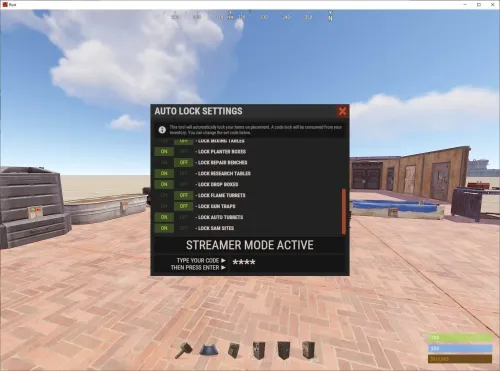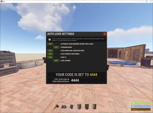 Say goodbye to the hassle of manual code locking! With this plugin, you can easily auto-lock items with a preset code straight from your inventory. Your teammates will also get instant access, no extra steps needed. The interface is super easy to use, making code updates and settings changes quick and simple. Give your Rust server a boost with this must-have plugin!