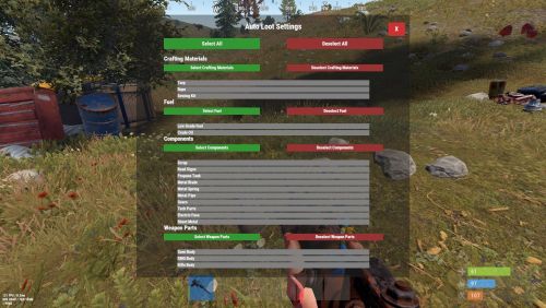 Tired of manually looting every barrel and road sign in Rust? AutoLootMaster revolutionizes scavenging by automatically collecting selected items from barrels and road signs when you destroy them. With a sleek, category-based UI, players can easily customize what they want to auto-pickup – from scrap and components to fuel and weapon parts. No more wasting time on unwanted junk!