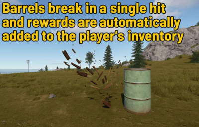 Barrels break in a single hit, and rewards are automatically added to the player’s inventory.