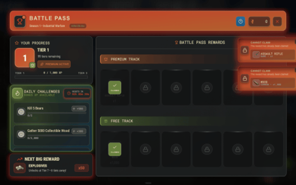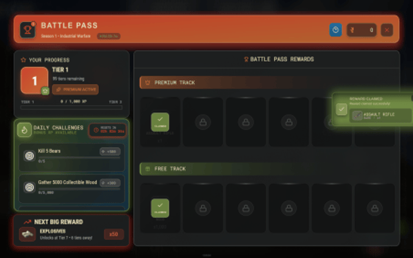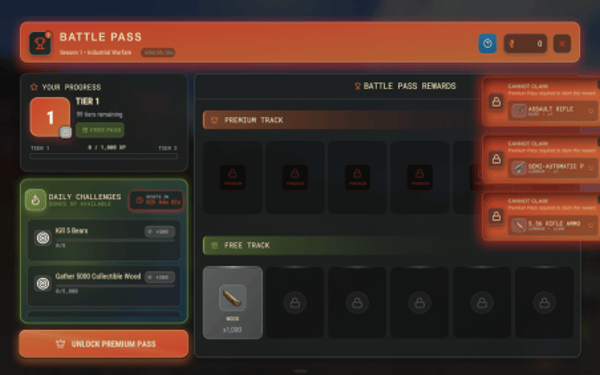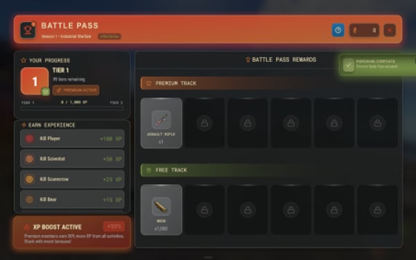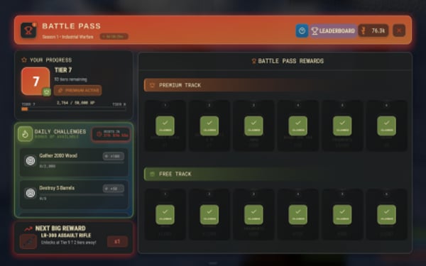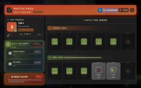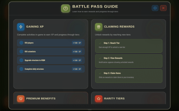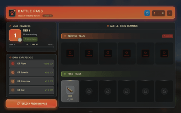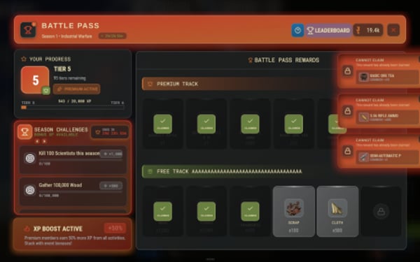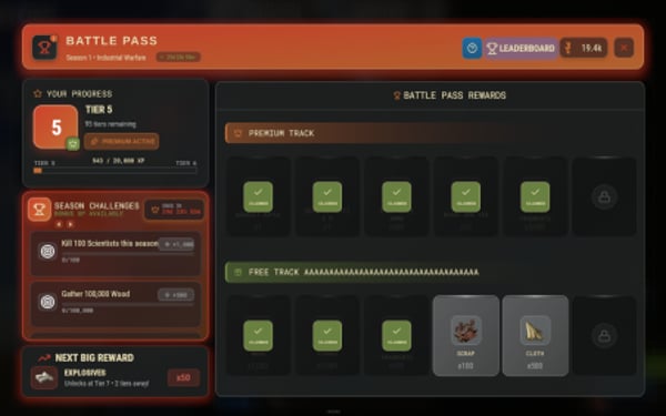 : Offer both Free and Premium paths. Server owners can monetize the Premium track by allowing players to purchase access using Economics, Server Rewards (RP), or in-game items like Scrap.