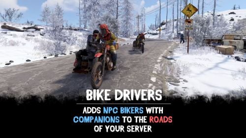 Want more action on Rust roads? Bike Drivers adds AI bikers with ready to defend armed companions. Customize everything: from bike type and loot to AI behavior and path generation, including off-road support (beta) to surprise your players!