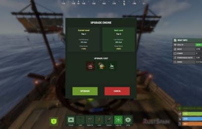 - boatcontrol.engineupgrade Allows players to upgrade engines (fuel efficiency and engine power) according to the configured upgrade levels.