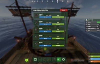 - Displays a window similar to the config menu showing all engines placed on the boat.