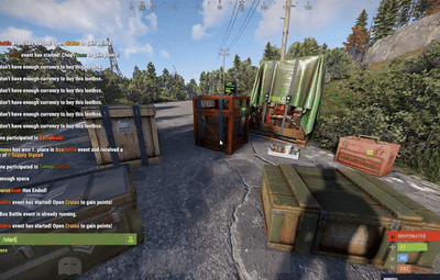 { "Only Command Start Event": false, "Minimum Players To Start Event": 1, "Show Leaderboard": true, "Leaderboard Location (top right, top center, top left | left center, right center | bottom left)": "top right", "How long will Event last (seconds)": 180.0, "How often will the event be launched(Seconds)": 1200.0, "Show Event GameTip Notifications": true, "Shown GameTip Duration (seconds)": 7.0, "Show Event Chat Notifications": true, "Notification of Event Start(Chat and GameTip)": "<color=#f7b731>Box</color><color=#e25822>Battle</color> event has started! Open <color=#f7b731>Crates</color> to gain points!", "Notification When nobody participates in the event": "No one participated in <color=#f7b731>Box</color><color=#e25822>Battle</color>", "Notification Sound of Event Start": true, "Winner Multiple Announcements Delay(seconds)": 3.0, "Box Types and Points Amount": { "crate_elite": 1, "crate_basic": 1, "crate_tools": 1, "bradley_crate": 1, "heli_crate": 1, "codelockedhackablecrate": 1, "codelockedhackablecrate_oilrig": 1, "crate_normal": 1, "crate_normal_2": 1, "crate_normal_2_food": 1, "crate_normal_2_medical": 1, "crate_food_1": 1, "crate_food 2": 1, "crate_fuel": 1, "crate_medical": 1, "supply_drop": 1, "vehicle_parts": 1, "crate_mine": 1 }, "Winner Rewards, make sure to change each value to your liking(1-6)": { "1": { "Reward Enabled": true, "Reward Type (1 = Item, 2 = Command, 3 = Economics(Plugin REQ), 4 = ServerRewards(Plugin REQ)": 1, "Reward Item": "scrap", "Reward Item Amount": 420, "Reward Item Custom Name": "", "Reward Item Skin ID": 0, "Reward Command": "oxide.usergroup add {player.id} vip", "Reward Command Display Name (Chat and GameTip)": "VIP", "Reward Economics Display Name (Chat and GameTip)": "Balance", "Reward ServerRewards Display Name (Chat and GameTip)": "RP", "Reward Economics Plugin Amount": 420.0, "Reward ServerRewards Plugin Amount": 420, "Notification of Who Won (supports {player_name}, {reward_display_name}, {crates_destroyed})": "<color=yellow>{player_name}</color> has won 1. place in <color=#f7b731>Box</color><color=#e25822>Battle</color> event and received a prize of <color=#f7b731>{reward_display_name}</color>!" }, "2": { "Reward Enabled": false, "Reward Type (1 = Item, 2 = Command, 3 = Economics(Plugin REQ), 4 = ServerRewards(Plugin REQ)": 1, "Reward Item": "scrap", "Reward Item Amount": 420, "Reward Item Custom Name": "", "Reward Item Skin ID": 0, "Reward Command": "oxide.usergroup add {player.id} vip", "Reward Command Display Name (Chat and GameTip)": "VIP", "Reward Economics Display Name (Chat and GameTip)": "Balance", "Reward ServerRewards Display Name (Chat and GameTip)": "RP", "Reward Economics Plugin Amount": 420.0, "Reward ServerRewards Plugin Amount": 420, "Notification of Who Won (supports {player_name}, {reward_display_name}, {crates_destroyed})": "<color=yellow>{player_name}</color> has won 1. place in <color=#f7b731>Box</color><color=#e25822>Battle</color> event and received a prize of <color=#f7b731>{reward_display_name}</color>!" }, "3": { "Reward Enabled": false, "Reward Type (1 = Item, 2 = Command, 3 = Economics(Plugin REQ), 4 = ServerRewards(Plugin REQ)": 1, "Reward Item": "scrap", "Reward Item Amount": 420, "Reward Item Custom Name": "", "Reward Item Skin ID": 0, "Reward Command": "oxide.usergroup add {player.id} vip", "Reward Command Display Name (Chat and GameTip)": "VIP", "Reward Economics Display Name (Chat and GameTip)": "Balance", "Reward ServerRewards Display Name (Chat and GameTip)": "RP", "Reward Economics Plugin Amount": 420.0, "Reward ServerRewards Plugin Amount": 420, "Notification of Who Won (supports {player_name}, {reward_display_name}, {crates_destroyed})": "<color=yellow>{player_name}</color> has won 1. place in <color=#f7b731>Box</color><color=#e25822>Battle</color> event and received a prize of <color=#f7b731>{reward_display_name}</color>!" }, "4": { "Reward Enabled": false, "Reward Type (1 = Item, 2 = Command, 3 = Economics(Plugin REQ), 4 = ServerRewards(Plugin REQ)": 1, "Reward Item": "scrap", "Reward Item Amount": 420, "Reward Item Custom Name": "", "Reward Item Skin ID": 0, "Reward Command": "oxide.usergroup add {player.id} vip", "Reward Command Display Name (Chat and GameTip)": "VIP", "Reward Economics Display Name (Chat and GameTip)": "Balance", "Reward ServerRewards Display Name (Chat and GameTip)": "RP", "Reward Economics Plugin Amount": 420.0, "Reward ServerRewards Plugin Amount": 420, "Notification of Who Won (supports {player_name}, {reward_display_name}, {crates_destroyed})": "<color=yellow>{player_name}</color> has won 1. place in <color=#f7b731>Box</color><color=#e25822>Battle</color> event and received a prize of <color=#f7b731>{reward_display_name}</color>!" }, "5": { "Reward Enabled": false, "Reward Type (1 = Item, 2 = Command, 3 = Economics(Plugin REQ), 4 = ServerRewards(Plugin REQ)": 1, "Reward Item": "scrap", "Reward Item Amount": 420, "Reward Item Custom Name": "", "Reward Item Skin ID": 0, "Reward Command": "oxide.usergroup add {player.id} vip", "Reward Command Display Name (Chat and GameTip)": "VIP", "Reward Economics Display Name (Chat and GameTip)": "Balance", "Reward ServerRewards Display Name (Chat and GameTip)": "RP", "Reward Economics Plugin Amount": 420.0, "Reward ServerRewards Plugin Amount": 420, "Notification of Who Won (supports {player_name}, {reward_display_name}, {crates_destroyed})": "<color=yellow>{player_name}</color> has won 1. place in <color=#f7b731>Box</color><color=#e25822>Battle</color> event and received a prize of <color=#f7b731>{reward_display_name}</color>!" }, "6": { "Reward Enabled": false, "Reward Type (1 = Item, 2 = Command, 3 = Economics(Plugin REQ), 4 = ServerRewards(Plugin REQ)": 1, "Reward Item": "scrap", "Reward Item Amount": 420, "Reward Item Custom Name": "", "Reward Item Skin ID": 0, "Reward Command": "oxide.usergroup add {player.id} vip", "Reward Command Display Name (Chat and GameTip)": "VIP", "Reward Economics Display Name (Chat and GameTip)": "Balance"