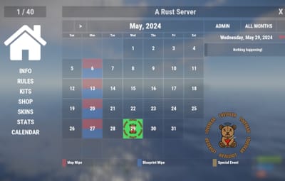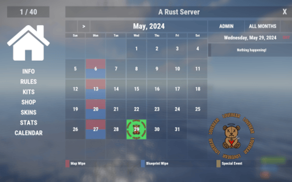 Extremely easy and dynamic Calendar system for your server! In just a few seconds you could inform players about the next few months of wipes, events, etc!