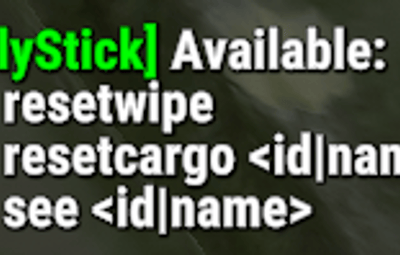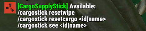 /cargostick resetwipe /cargostick see <id|name> /cargostick resetcargo <id|name> (Also available as console commands with the same syntax.)