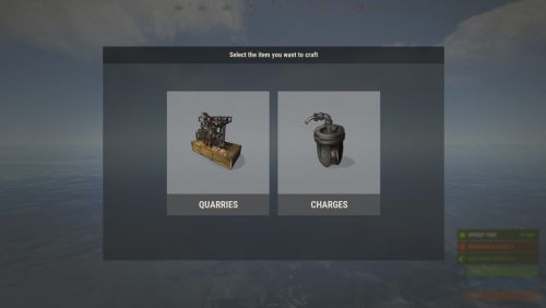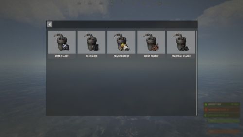 Quote{ "General settings": { "Command to open the craft panel": "charge", "Allow panel scaling when the interface is scaled?": false, "Close the panel after crafting?": true, "Allow work with the Backpacks plugin?": true, "Allow work with the ItemRetriever plugin?": true, "Allow work with the Friends plugin?": false, "Allow work with the Clans plugin?": false, "Allow work with the Rust Teams?": true, "Notify friends within the charge's explosion radius of the resources being mined?": true }, "Quarries settings": { "Only friends can turn on/off quarries?": true, "Simplified quarry installation mode (increased server load)": { "Enable this mode?": true, "In what radius look for objects that interfere with the installation of the quarry? [advice >= 8]": 10.0, "Maximum distance from the player on which the quarry can be set [advice 20]": 20.0 }, "Working with the pipe system": { "Add storage adapters to quarries?": true, "Time for laying the pipe [sec.]": 20, "Maximum distance between industrial devices": 30.0 }, "Mining quarry": { "Quarry name": "MINING QUARRY", "Workbench level [0 - not needed]": 1, "Crafting ingredients": [ { "Shortname": "scrap", "Ingredient name (empty - default)": "", "Amount": 500, "SkinId": 0 }, { "Shortname": "metal.refined", "Ingredient name (empty - default)": "", "Amount": 300, "SkinId": 0 } ] }, "Pump jack": { "Quarry name": "PUMP JACK", "Workbench level [0 - not needed]": 1, "Crafting ingredients": [ { "Shortname": "scrap", "Ingredient name (empty - default)": "", "Amount": 500, "SkinId": 0 }, { "Shortname": "metal.refined", "Ingredient name (empty - default)": "", "Amount": 300, "SkinId": 0 } ] } }, "Charges settings": [ { "Charge name": "HQM CHARGE", "Enable craft?": true, "Charge description": "This is a charge on a certain type of resources. You need to explode it in an empty place and then install the quarry.", "Charge permission": "hqmetal", "Charge skinId": 2862790757, "Workbench level [0 - not needed]": 3, "How much to give out when crafting?": 1, "Which quarry to use? [Mining, Pump]": "Mining", "How many seconds before the charge explodes? [advice 5]": 5, "Crater spawning chance [0-100]": 80, "Crater HP": 250, "Maximum water depth at which the charge will work [advice <= 0.8]": 0.8, "Return the charge if it is exploded in the incorrect place?": true, "Allow charge explosion if no permission?": true, "Is permission required to craft a charge?": false, "Crafting ingredients": [ { "Shortname": "scrap", "Ingredient name (empty - default)": "", "Amount": 150, "SkinId": 0 }, { "Shortname": "grenade.beancan", "Ingredient name (empty - default)": "", "Amount": 5, "SkinId": 0 }, { "Shortname": "surveycharge", "Ingredient name (empty - default)": "", "Amount": 1, "SkinId": 0 }, { "Shortname": "metal.refined", "Ingredient name (empty - default)": "", "Amount": 300, "SkinId": 0 } ], "Extractable resources": [ { "Resource shortname": "hq.metal.ore", "Resource name (empty - default)": "", "Chance of a resource in the crater [0-100]": 90, "Minimal amount [pM]": 5.0, "Maximum amount [pM]": 10.0 } ] }, { "Charge name": "OIL CHARGE", "Enable craft?": true, "Charge description": "This is a charge on a certain type of resources. You need to explode it in an empty place and then install the quarry.", "Charge permission": "oil", "Charge skinId": 2777003724, "Workbench level [0 - not needed]": 2, "How much to give out when crafting?": 1, "Which quarry to use? [Mining, Pump]": "Oil", "How many seconds before the charge explodes? [advice 5]": 5, "Crater spawning chance [0-100]": 90, "Crater HP": 250, "Maximum water depth at which the charge will work [advice <= 0.8]": 0.8, "Return the charge if it is exploded in the incorrect place?": true, "Allow charge explosion if no permission?": true, "Is permission required to craft a charge?": false, "Crafting ingredients": [ { "Shortname": "scrap", "Ingredient name (empty - default)": "", "Amount": 150, "SkinId": 0 }, { "Shortname": "grenade.beancan", "Ingredient name (empty - default)": "", "Amount": 5, "SkinId": 0 }, { "Shortname": "surveycharge", "Ingredient name (empty - default)": "", "Amount": 1, "SkinId": 0 }, { "Shortname": "metal.refined", "Ingredient name (empty - default)": "", "Amount": 300, "SkinId": 0 } ], "Extractable resources": [ { "Resource shortname": "crude.oil", "Resource name (empty - default)": "", "Chance of a resource in the crater [0-100]": 100, "Minimal amount [pM]": 5.0, "Maximum amount [pM]": 10.0 } ] }, { "Charge name": "COMBO CHARGE", "Enable craft?": true, "Charge description": "This is a charge on a certain type of resources. You need to explode it in an empty place and then install the quarry.", "Charge permission": "combo", "Charge skinId": 2777003454, "Workbench level [0 - not needed]": 1, "How much to give out when crafting?": 1, "Which quarry to use? [Mining, Pump]": "Mining", "How many seconds before the charge explodes? [advice 5]": 5, "Crater spawning chance [0-100]": 90, "Crater HP": 250, "Maximum water depth at which the charge will work [advice <= 0.8]": 0.8, "Return the charge if it is exploded in the incorrect place?": true, "Allow charge explosion if no permission?": true, "Is permission required to craft a charge?": false, "Crafting ingredients": [ { "Shortname": "scrap", "Ingredient name (empty - default)": "", "Amount": 150, "SkinId": 0 }, { "Shortname": "grenade.beancan", "Ingredient name (empty - default)": "", "Amount": 5, "SkinId": 0 }, { "Shortname": "surveycharge", "Ingredient name (empty - default)": "", "Amount": 1, "SkinId": 0 }, { "Shortname": "metal.refined", "Ingredient name (empty - default)": "", "Amount": 300, "SkinId": 0 } ], "Extractable resources": [ { "Resource shortname": "stones", "Resource name (empty - default)": "", "Chance of a resource in the crater [0-100]": 100, "Minimal amount [pM]": 5.0, "Maximum amount [pM]": 10.0 }, { "Resource shortname": "sulfur.ore", "Resource name (empty - default)": "", "Chance of a resource in the crater [0-100]": 100, "Minimal amou