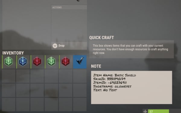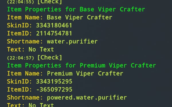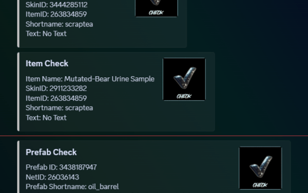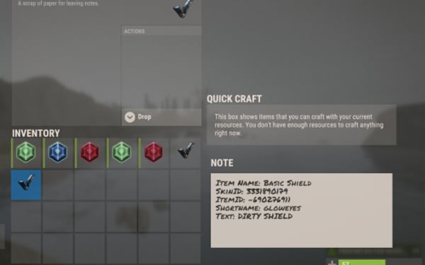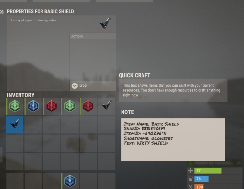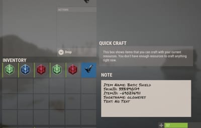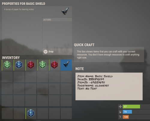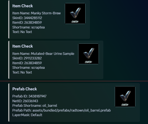 I added the Name, Shortname, SkinID, ItemID & Text Field, to be sent to a Note for Debug or Development Purpose, or maybe there is a pesky custom item and you need to pinpoint its origin.