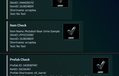 { "Note SkinID": 3341490454, "Output Log to Discord?": false, "Discord URL": "" }