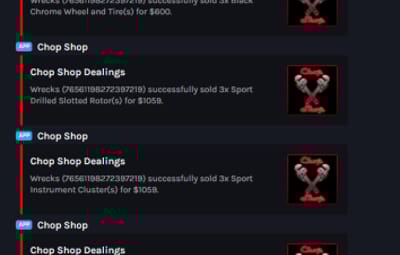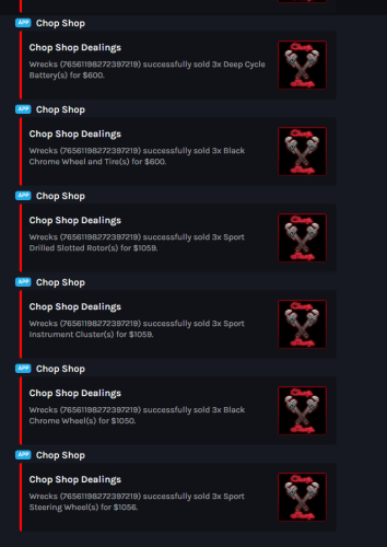 Output all sales to Discord to track your economy and make adjustments as needed to the Chop Shop NPCs' "Bonus Buy” & "Discount Buy” as needed to suit your taste.