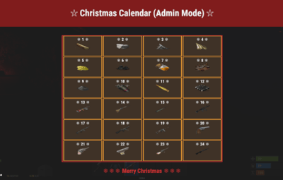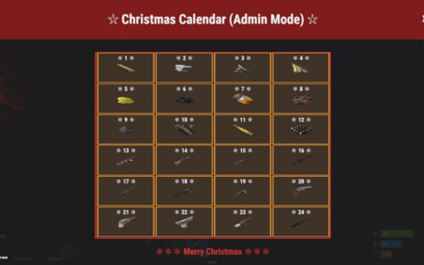 The Christmas Calendar plugin brings festive cheer to the server by allowing players to open a gift every day in December until the 24th. It provides a user-friendly interface where players can claim their daily rewards in the form of resources or items. Administrators have the ability to access all gifts at any time in admin mode. Get your players to visit your server more often with this plugin they will look forward to joining every new day.