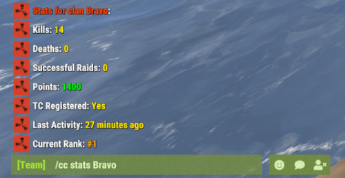 - /cc top - View top 5 clans in chat