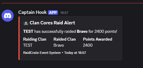 - Earn massive points for raids (configurable base: 1000 points + all points from raided clan)