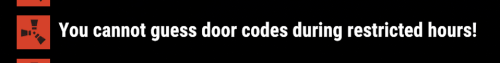 When attempting to guess a code during restricted hours, an error message will be shown in chat to the offending player and no damage/confirmation effect will take place from entering a code.