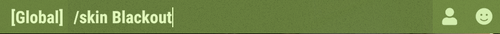 - /skinall <Name or Skin ID>: Skin all items in the inventory, hotbar and on the character. Â At the same time, if the name of a series of skins is specified (Ex. Blackout), the skin will be applied to all items regardless of whether they are clothing or weapons.