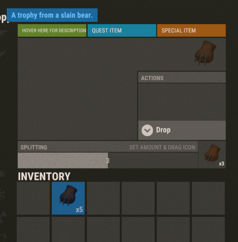For non-usable items (eg custom craft components, quest items), use RHIB as the parent item. It has a blank description to avoid confusion.