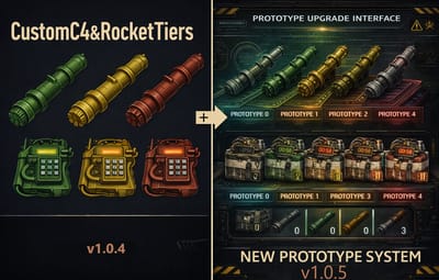 CustomC4 & RocketTiers is a Rust plugin that extends explosive gameplay with fully configurable C4 and Rocket Launcher tiers. Each tier can define custom damage values, skins, and (for launchers) wear/condition loss per shot and magazine size for balanced progression.