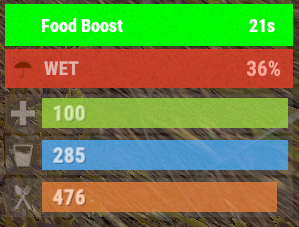 - Boost system: Add health, hydration, calories, comfort, or radiation effects — with optional timers and automatic reset.