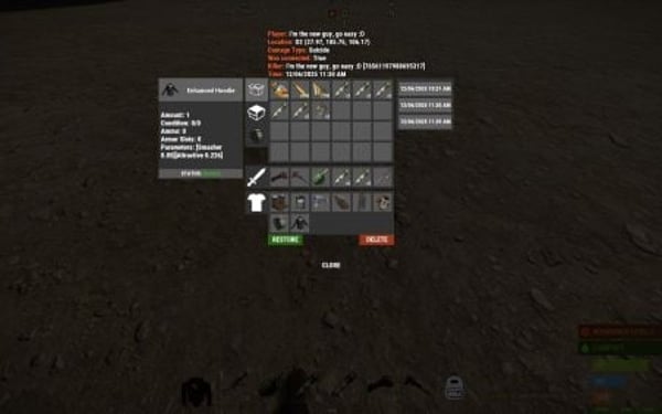 Admins can select items from the UI to see more details about the item such as the items condition, amount, ammo, armor slots and other parameters (such as buffs from ItemPerks).